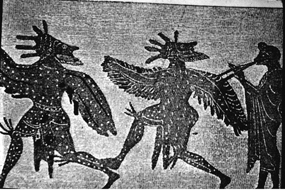 1) HOOPOE: "That is the yellow-bellied gobbler." MAKEMEDO: "What! There's another besides Cleonymus?" (286-87) 2) MAKEMEDO: "[You birds are] kings more ancient than Cronus, more archaic than the Titans, even older than the Earth!" (466-67) 3) HOOPOE: "You can blame that damned playwright, Sophocles. He did this to me in that dreadful tragedy of his, Tereus" (100-01). |