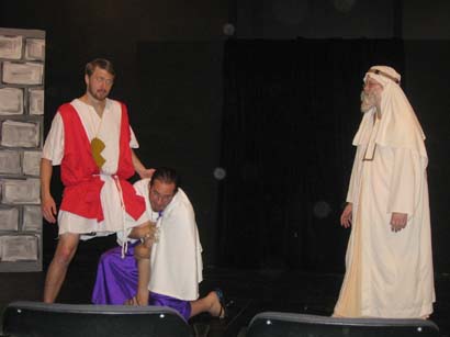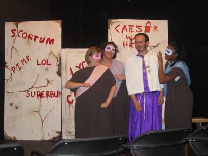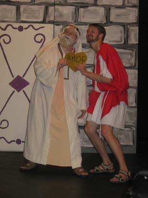 The funny situations keep coming as the three stowaways go incognito as the world's greatest aviators to get into the country. More hilarity follows as Groucho attempts to hide the men from the law. They get caught and Groucho gets fired, consequently withdrawing his marriage proposal to Mrs. Claypool. The plot builds to its climax of comedy as Driftwood, Tomasso and Fiorello resolve to exact revenge upon Gottlieb. They sabotage the opera, causing much embarrasment for the lead tenor Rodolfo Lassparri, who has always been arrogant towards Ricardo and was a nuisance to Rosa. The action is high-paced and chaotic during the scene where they are sabotaging the opera. One gag comes right after the other and the laughs are layered on one another as Tomasso and Fiorello do ridiculous things on stage and Driftwood does ridiculous things in the audience. The pandemonium escalates until Tomasso takes Lassparri hostage, forcing Gottlieb to let Ricardo and Rosa take the lead roles for the rest of the show. Thus Ricardo's original goals of being with Rosa and having a job are fulfilled. Through all of his cunning manipulation Driftwood gets his job back working for Gottlieb. Plautus' PoenulusPoenulus follows a pretty standard Plautine plot. It opens with a prologue delivered by the slave Igor (originally called Milphio), which gives the audience an introduction to the sarcastic nature of his character and basic background information on the plot up to the beginning of the play. Igor's master Boris (originally Agorastocles) was born in Baghdad (Carthage) but was kidnapped at an early age and taken to Sarajevo, where he was sold to a "rich old man, who wanted children, and couldn't stand women" (lines 73-74). It just so happens that the rich old man was an old friend of the boy's father but was unaware of this fact. Poenulus differs from most of Plautus' plays in that instead of having only one kidnapped child who is sold far away from home, it has three. Boris has two female cousins who were also kidnapped from Baghdad and then were sold to a pimp who, at the opening of the play, lives next door to Boris. The pimp, called the Wolf in our translation (originally Lycus), intends to make the girls become prostitutes and make money for him. The catch is that Boris has fallen in love with the older of the sisters, Tchotchka (Adelphasium). This follows the less traditional pattern of a free born man falling in love with a lower class slave woman.